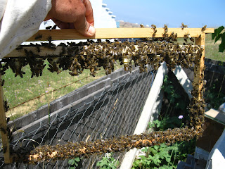 Daha sonra bu senenin üretimi olan ana arılarımdan birini kafesleyip orta kısma bir uca saldırgan anayı diğer uca sakin anayı kafes içinde koydum. Bu pozisyonda 3-4 gün bekleyeceklerdi ama şartların zorunlu kılması sonucu olarak bir hafta beklemek zorundalar sonra saldırgan ana alınıp sakin ana bırakılacak. Bu yöntemi uyguladığını ve başarılı olduğunu söyleyen yabancı bir siteden öğrendim.Adını hatırlamıyorum sitenin ama burayı tıkladığınızda ulaşabilirsiniz:)